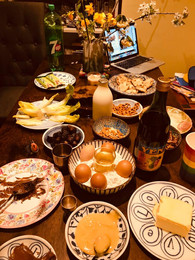 The night of the Mimouna on April 16, The European Jewish Cultural and Academic Center (ECUJE) held a virtual Mimouna party on zoom entitled La Grande Mimouna starting at 11pm Paris time. The tile view showed over 900 people in attendance throughout the world in Israel, France, Morocco, New York and Montreal amongst others, they say that there were over 25,000 that connected throughout the evening. David Benaym was the MC, Enrico Macias sang a traditional Mimouna song from his kitchen, from Marseille and dressed in a kaftan, Françoise Atlan sang a cappella, Gilbert Montagné sang a pop song in French accompanying himself on his Yamaha piano from his bedroom. Later in the evening a violinist and percussionist played some chaabi music from their apartment in Paris. Serge Berdugo, head of the Council for Israelite Communities of Morocco spoke about the communal meaning behind the Mimouna. The MC was keen to see Mr. Berdugo’s table which is famous for having splendid dishes every year. This Mimouna was able to virtually create the feeling of crowd, cacophony, live music, copious food and overall festive atmosphere that is the backbone of Mimouna celebrations without social distancing.