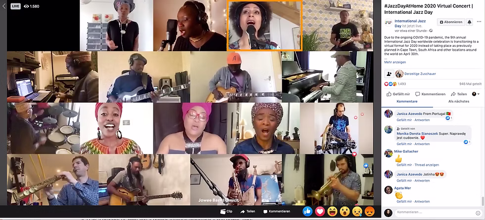 Since the second meeting, the group organisers have conducted a survey, which is getting evaluated these days. They will draw from the first two sessions, in particular from the second one, and finalise their thoughts on moving to a new platform, which could be a website, forum or a combination of the existing platforms. Next to the issue of gender balance in academia, on the bandstand or in the audience, the aspect of how to teach jazz history has become a second point of inquiry on the email list server. Over the past weeks, an interesting exchange among the JSC members has emerged, in which they debate alternative approaches to teaching jazz history. One question that has been addressed multiple times: What are the benefits and disadvantages of taking a reverse chronological approach towards jazz history? As the members of the JSC continued their discussion on how we could head towards a more inclusive and interdisciplinary jazz research community, a major global celebration took place on April 30: the 2020 International Jazz Day. Designed to bring people together under the umbrella of jazz as intercultural dialogue, Jazz Day aims for unifying disparate cultures and emphasises solidarity among peoples. It is held annually by the UNESCO and hosted by Goodwill Ambassador Herbie Hancock since 2011 in another global host city. Every year, it concludes with a live-streamed All-Star concert. However due to the outbreak of the coronavirus, this year’s version of International Jazz Day turned 100% virtual. There was no All-Star concert, but a pre-edited video streamed on Facebook and YouTube, which was moderated by Herbie Hancock from his living room. It featured international artists, excerpts from past editions and an official address by UNESCO Director General Audrey Azoulay. It also provided for a virtual forum offering educational programmes live-streamed via Zoom in the six official languages of the United Nations, which are Arabic, Chinese, English, French, Russian and Spanish.